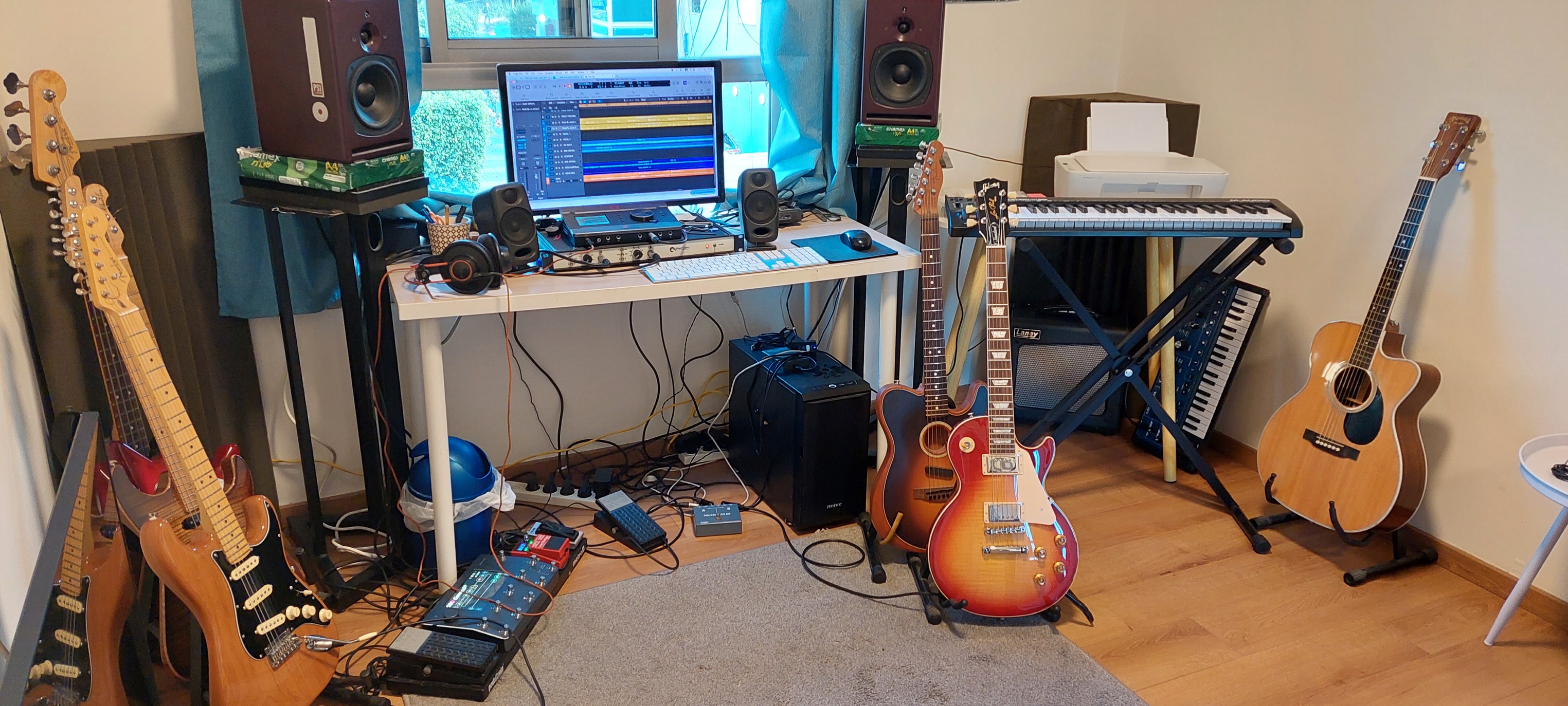 גיטרות אקוסטיות:Martin OMC-35e, Martin D-28 ,Taylor NS24cef Fender Acustasonic